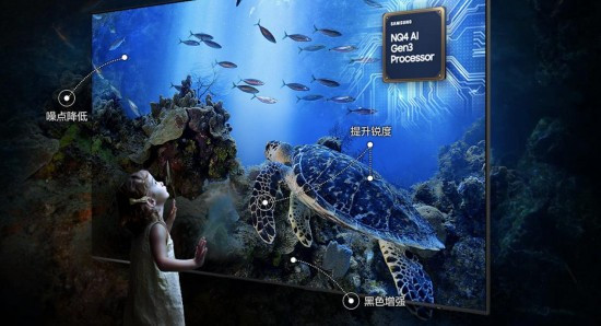 三星深谙真正的“超级”体验绝非简单的尺寸放大,专为巨幕研发的超大屏影像增强器就像超人的超级感官,通过AI驱动的影像增强技术、降噪技术、清晰度增强技术和智能黑色增强技术多维协同运作,赋予影像无懈可击的锐利质感与深邃层次。