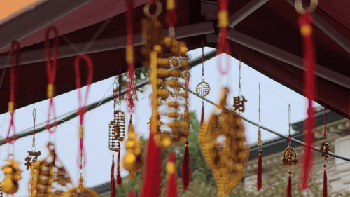 旁边还点缀着鲜红的小灯笼与飘扬的彩带