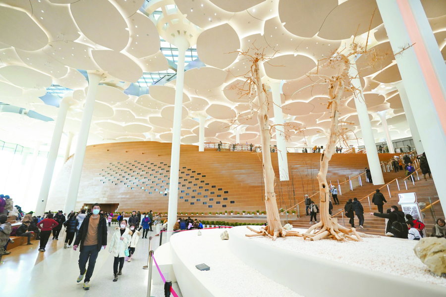 北京城市图书馆的场馆设计也颇为独特,像一座“临山间,于树下”的城市“森林书苑”。走进图书馆,就像走进了山谷和森林。宽敞明亮的大厅里有两座木制书山,屋顶的树状建筑结构的灵感来自银杏树叶片,由144棵“银杏树”构成的“森林伞盖”从“山谷”中拔地而起。国际图书联合会评审团称赞其“将书籍、人与自然通过建筑设计完美连接”。