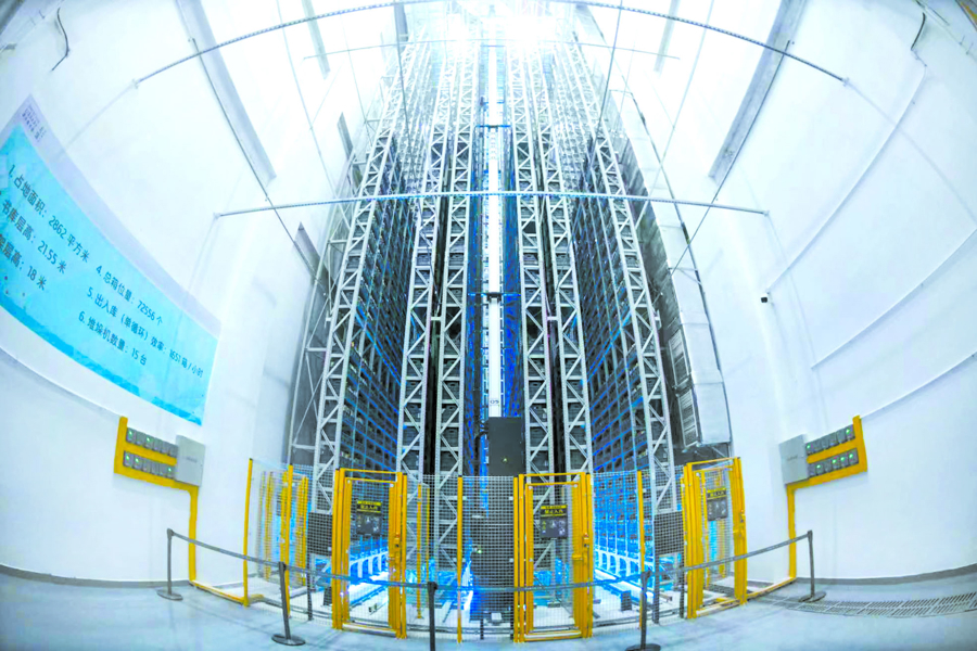 之所以被叫作智能立体书库,是因为它实现了全自动图书分拣和垂直调阅,从全馆540万册纸本文献中调取一本书到读者手中,只需要10分钟。整座书库的调阅系统由24台轨道小车组成,它们担任着“图书快递员”的角色,按照智能系统规划的路线精准运送图书,每台小车可同时装载5本书。